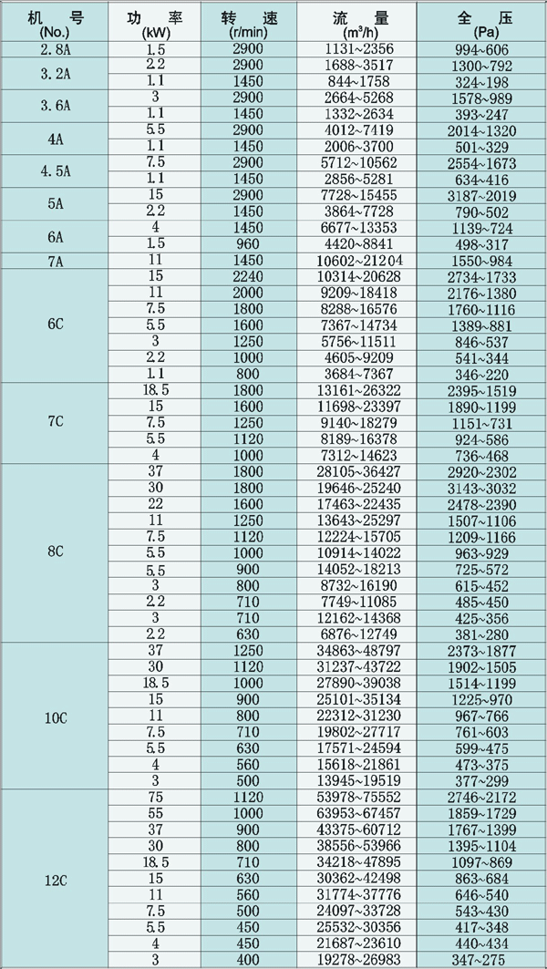 規(guī)格: F4-72型玻璃鋼防腐通風(fēng)機(jī)其性能參數(shù)與安裝尺寸與4-72型離心通風(fēng)機(jī)相同。